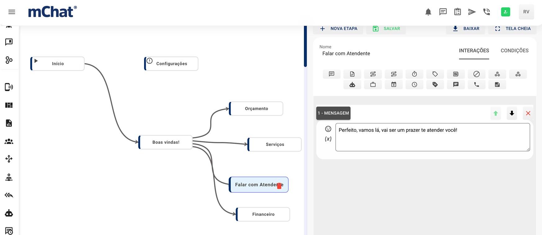 O mChat foi projetado para funcionar com total fluidez no mobile. Agilidade e controle para quem não pode parar.